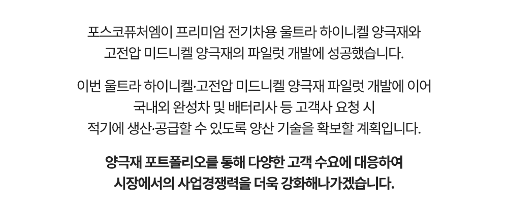 (광고)[포스코퓨처엠 뉴스레터] 포스코퓨처엠, 전기차 시장 공략할 양극재 포트폴리오 완성