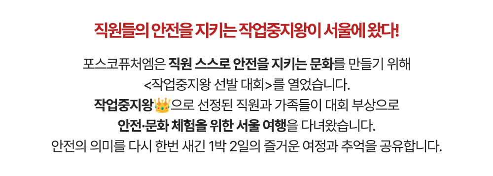 더욱 안전한 포스코퓨처엠을 위하여! 작업중지왕들의 특별한 여행